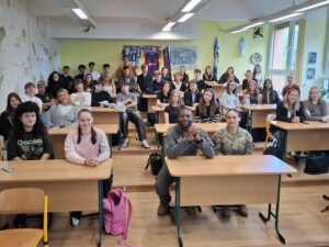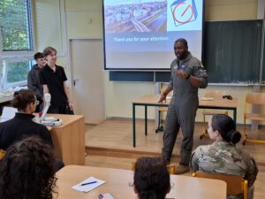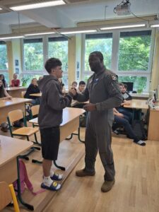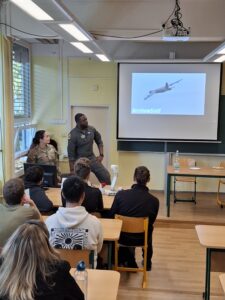 Následovala živá diskuse a zvídavé dotazy studentů, kteří se nebáli klást často i odborné otázky – od odborných detailů letecké techniky až po osobní motivaci k vojenské službě.