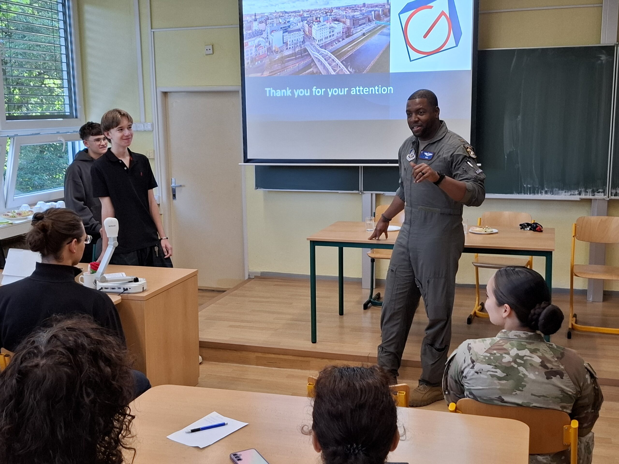 Zavítali k nám dva příslušníci americké armády a letectva, kterým jsme v úvodu představili naši školu i město.