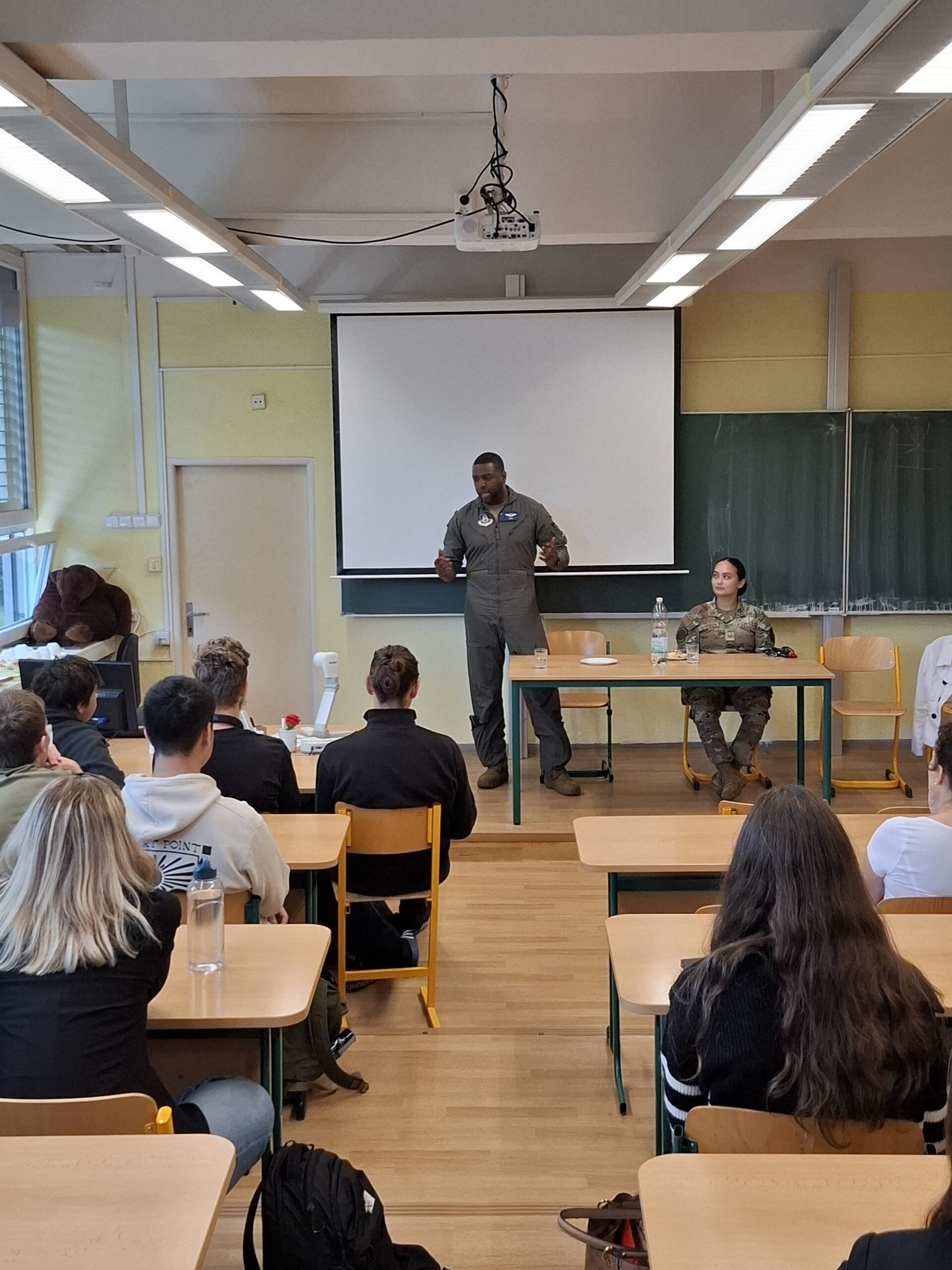 Následovala živá diskuse a zvídavé dotazy studentů, kteří se nebáli klást často i odborné otázky – od odborných detailů letecké techniky až po osobní motivaci k vojenské službě.