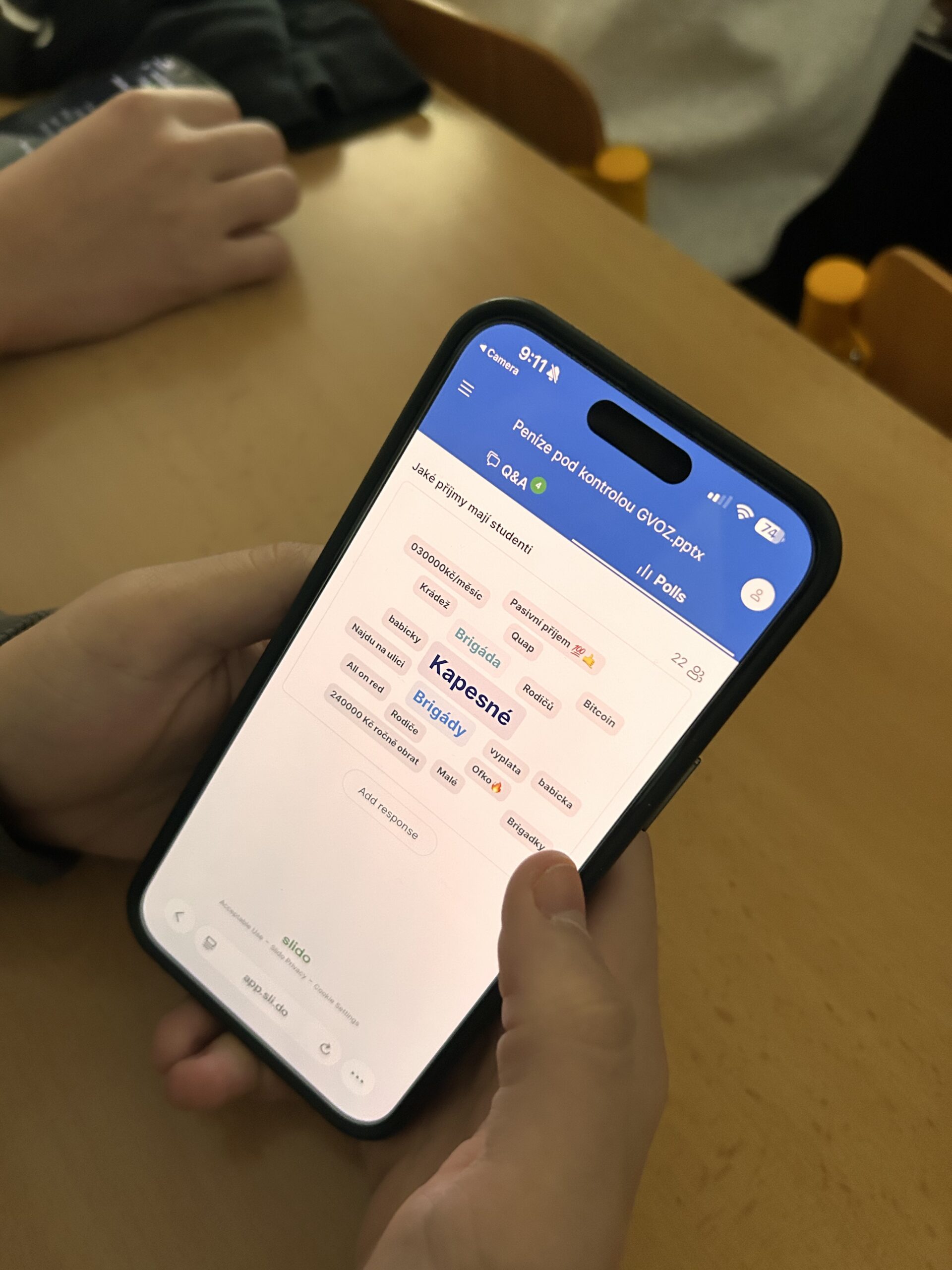Letos už potřetí zavítali také k nám – konkrétně do septim, kde proběhly besedy na téma Finance v praxi. Žáci se během besedy věnovali otázkám osobního rozpočtu, investic, úvěrů i daní, diskutovali o brigádách, podnikání i o tom, jak se vyhnout finančním pastím. To vše v neformálním duchu, jazykem, kterému rozumí jejich generace. To potvrzují i ohlasy žáků, ze kterých vybíráme: