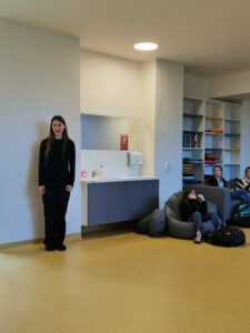 Bronz v kategorii vyšší gymnázium získala Adéla Durčáková z kvinty A, která recitovala Puškinovu báseň Rusalka, druhá příčka připadla Agátě Bogoczové, jež porotu dojala básní Jaroslava Seiferta Věneček z myrty, a konečně první místo opanovala Sofie Elle Chovancová, která obecenstvo ohromila a zároveň pobavila monologem personifikovaných brýlí.