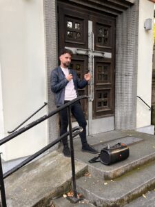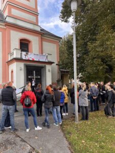 Sešli jsme se v ulici Závoří u kostela Navštívení Panny Marie, pokračovali k místnímu zámečku a skončili u tzv. bludného balvanu (zastávek bylo celkem jedenáct). Děkuji všem padesáti účastníkům, řediteli školy (realizováno ze Šablon) a v neposlední řadě panu průvodci, který byl velmi znalý, vtipný a skvěle nám zprostředkoval historii Zábřehu.