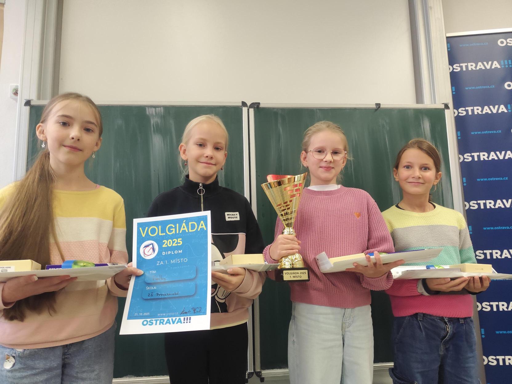 Na třetím místě se umístil tým ze ZŠ TGM Krmelín pod názvem Ospalý medvěd S.A.Š.A., stříbrnou medaili získal tým Lidský provaz ze ZŠ Provaznická. A už chybělo jen vyhlásit dnešní matematické šampiony… V místnosti zavládlo hrobové ticho a napětí, nikdo ani nedutal. Bylo slyšet tlukot srdce každého soutěžícího, když organizátoři oznámili: „Na prvním místě se umístil tým Fialky ze ZŠ Provaznická!“ Jásot vítězů a mohutný potlesk všech přítomných zaplnil místnost.